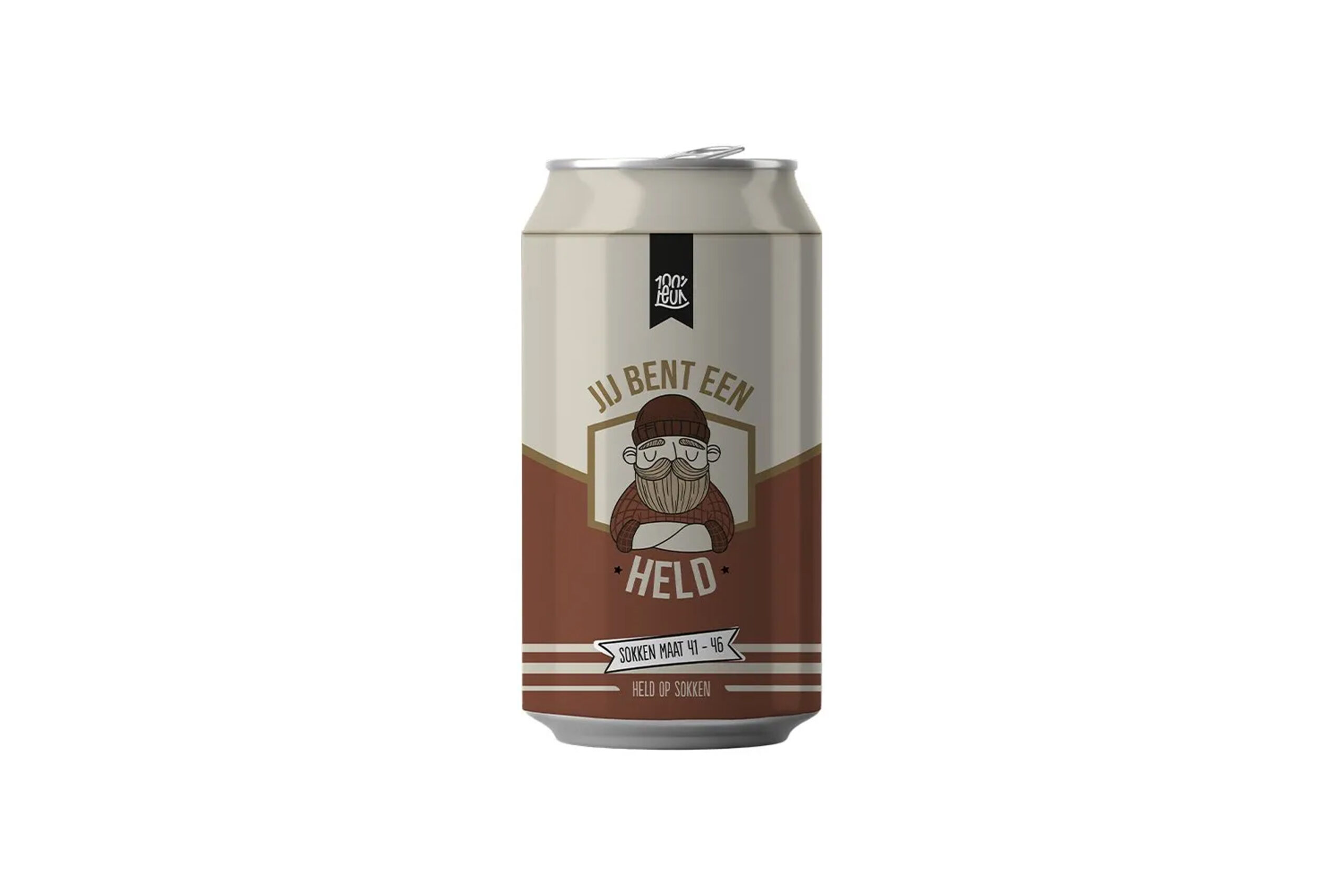 Maar dan wel in een 100%LEUKe verpakking, namelijk in een bierblikje!