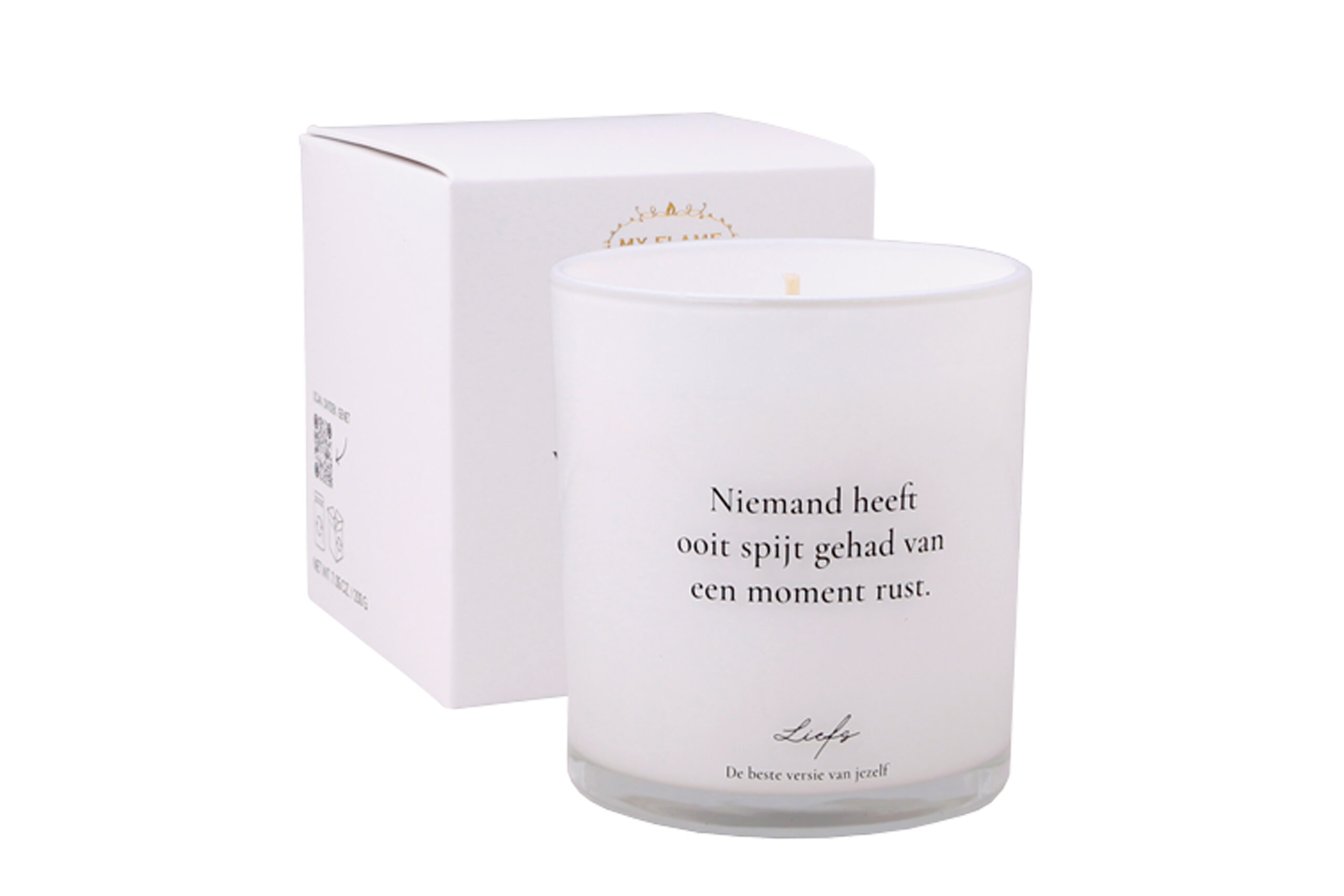 Neem een moment voor jezelf met de Fresh Cotton geurkaars van My Flame Lifestyle x Liefs Official.